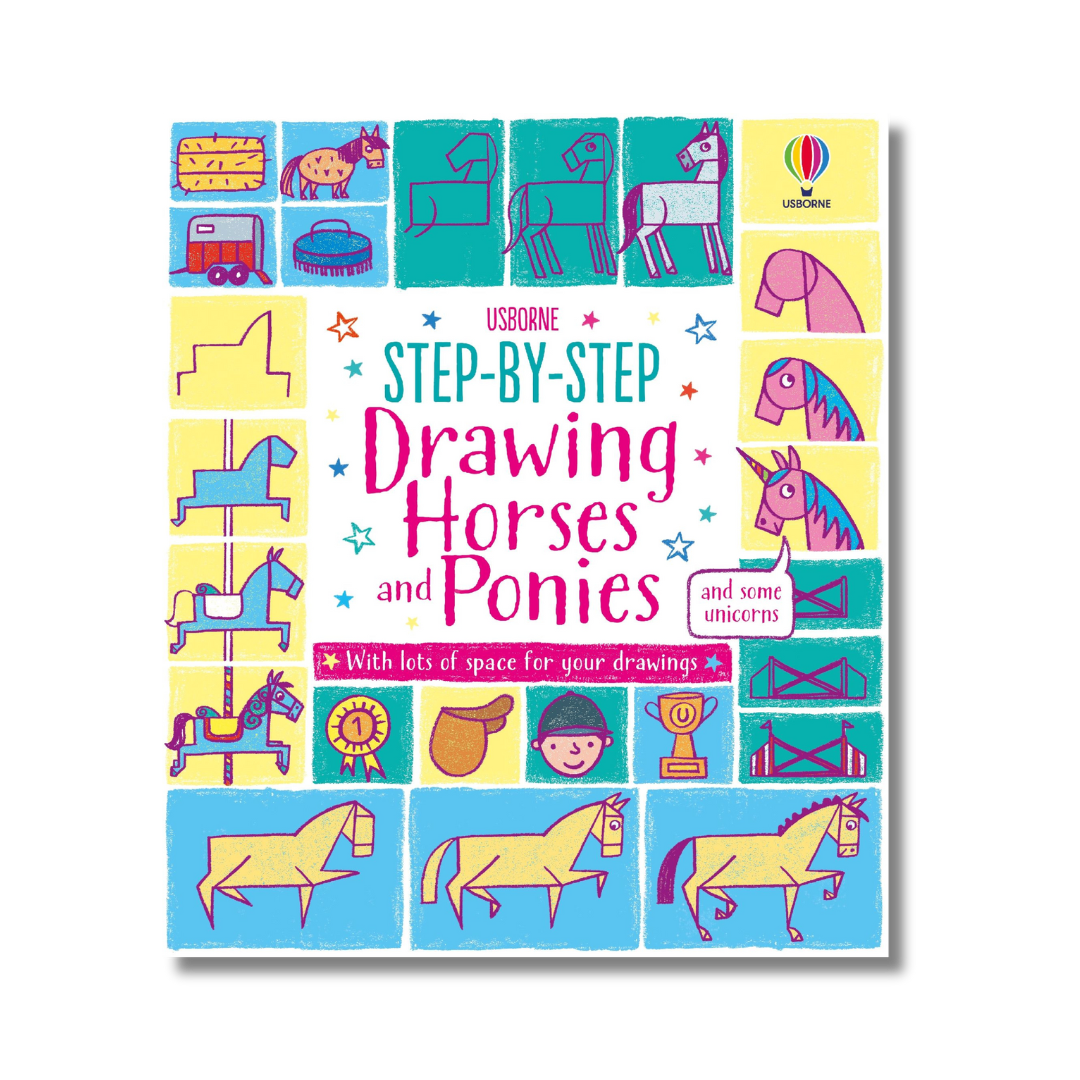Step-by-Step Drawing Horses and Ponies este o carte Usborne grozavă pentru copiii pasionați de cai, ponei și unicorni. Cu instrucțiuni colorate, pas cu pas, copiii pot învăța să deseneze un unicorn zburător, un cal care sare, o cocardă, un castel și multe altele. Cartea oferă mult spațiu pentru exersare și include scene detaliate precum concursuri ecvestre, grajduri și ceremonii de premii, perfecte pentru a antrena creativitatea și atenția la detalii.