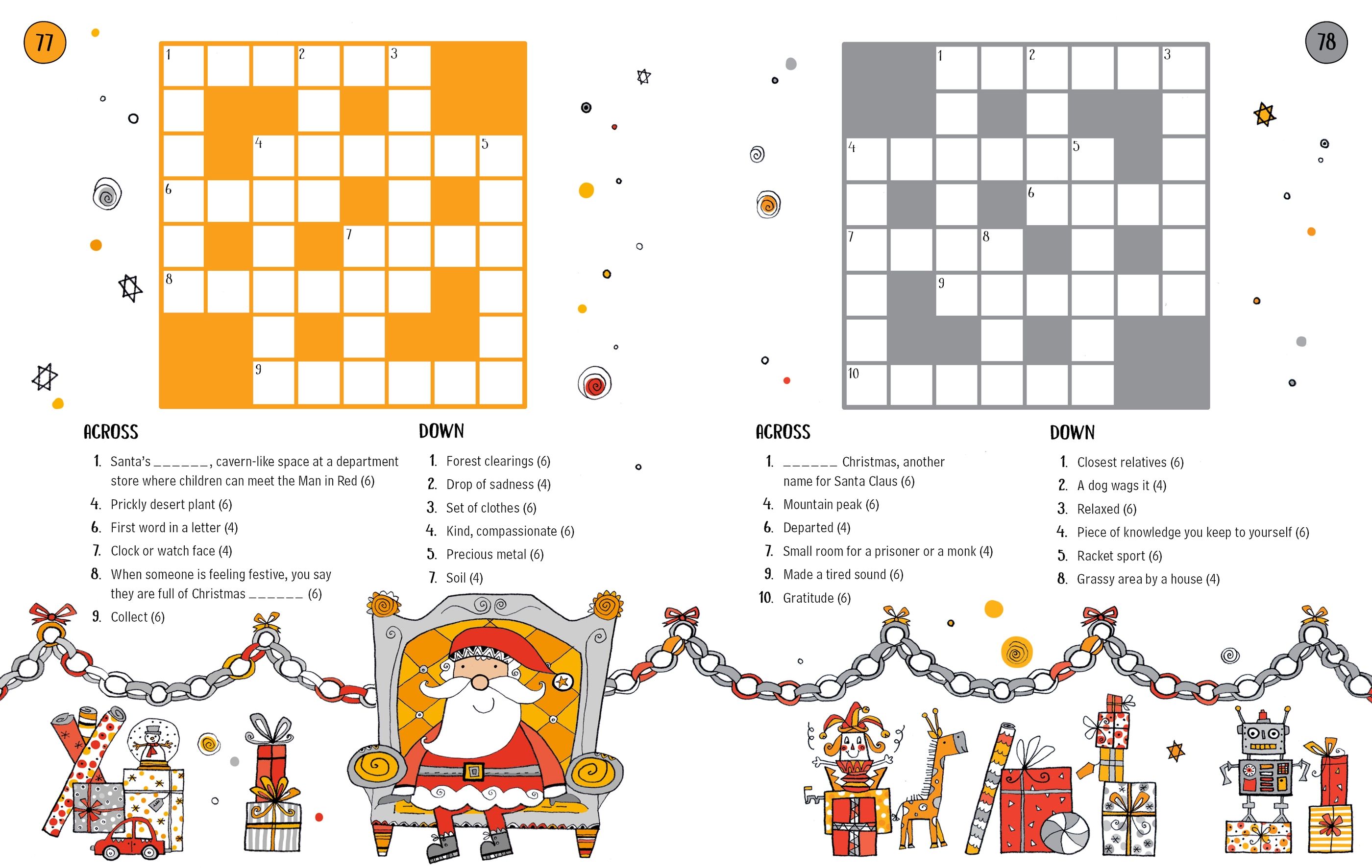 „100 Children’s Crosswords: Christmas” este o carte Usborne perfectă pentru micii iubitori de rebusuri în perioada sărbătorilor. Conține 100 de integrame festive, absolut potrivite pentru cei care aşteaptă Crăciunul: de la teme precum Moș Crăciun şi renii săi, decoraţiuni şi omuleţi de zăpadă veseli, până la cadouri, colinde, cântece şi mâncăruri de sărbătoare. Integramele devin din ce în ce mai provocatoare pe măsură ce parcurgi cartea. Ideale pentru momente din timpul liber sau pentru a rezolva împreună cu părinţii şi prietenii. Toate răspunsurile sunt la finalul cărţii, iar activitatea este o alternativă excelentă fără ecran, pentru dezvoltarea vocabularului şi a ortografiei copiilor.