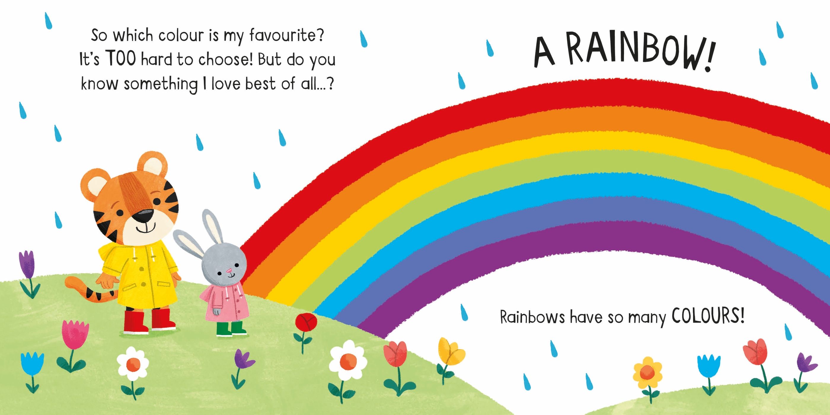 Little Board Books Colours este o carte fermecătoare din seria Little Board Books de la Usborne, creată special pentru micuții cititori. În această poveste simplă și plină de culoare, un mic tigru încearcă să-și aleagă o culoare preferată, uitându-se la floarea galbenă, la căpșunile roșii, la marea albastră sau la decorul roz de pe tortul de sărbătoare. La final, își dă seama că ceea ce îi place cel mai mult este curcubeul, pentru că are TOATE culorile!