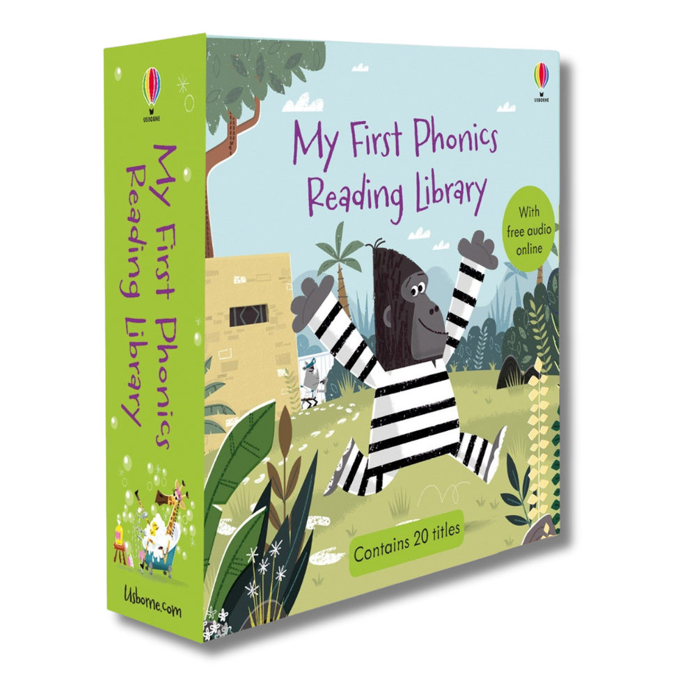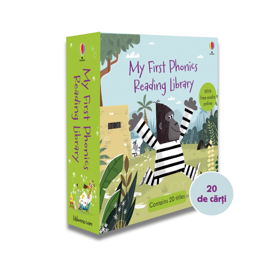 My First Phonics Reading Library este un set de 20 de cărți Usborne conceput special pentru copiii care încep să citească. Textele sunt scurte, amuzante și bazate pe fonetică, iar ilustrațiile colorate fac fiecare poveste ușor de urmărit și atractivă pentru cei mici.