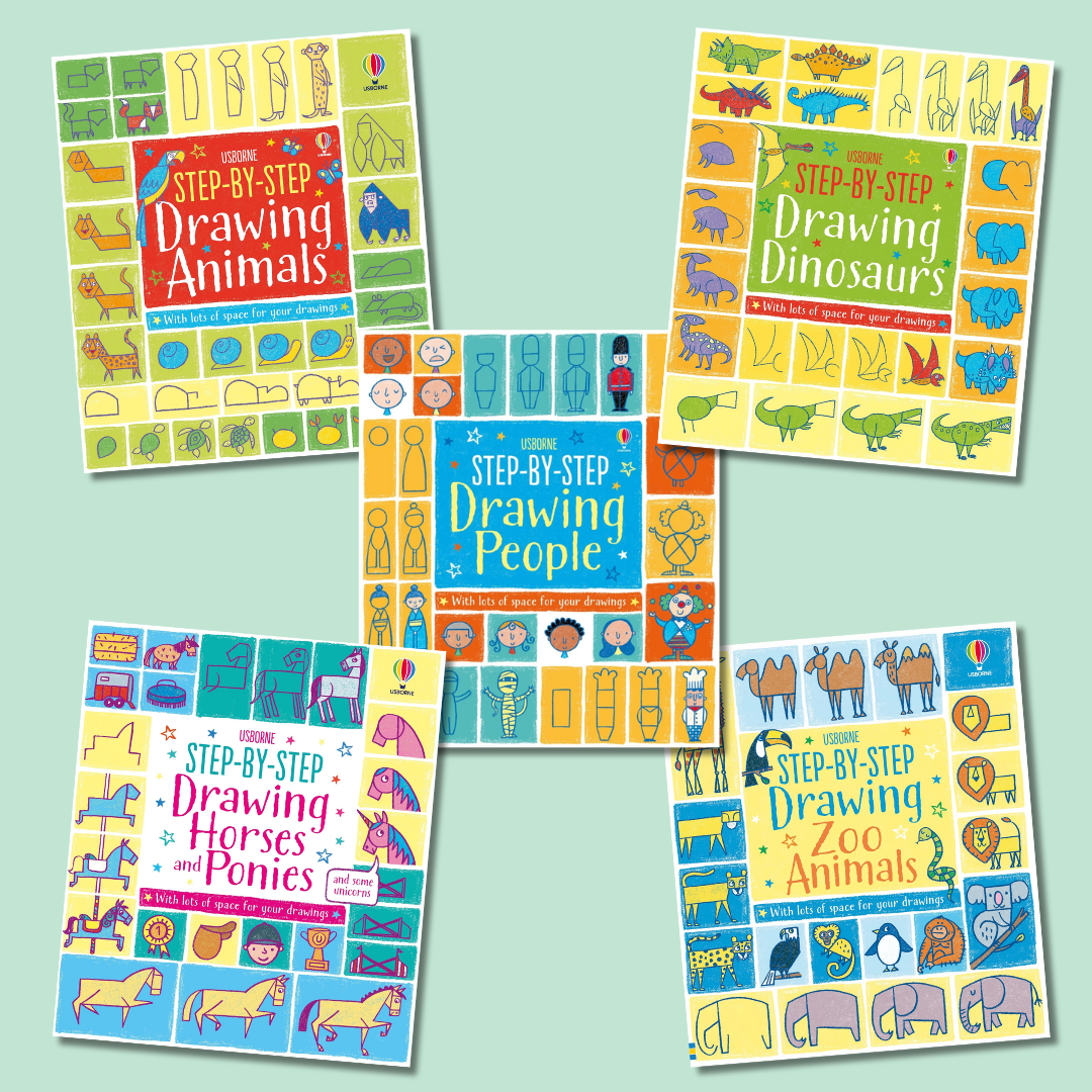 Pachetul Step-by-Step Drawing este ideal pentru micii artiști care iubesc să deseneze și să învețe pas cu pas cum prind viață animalele, oamenii sau dinozaurii. Fiecare carte oferă instrucțiuni simple, clare și spațiu generos pentru desen, astfel încât copiii să poată exersa și crea în voie.