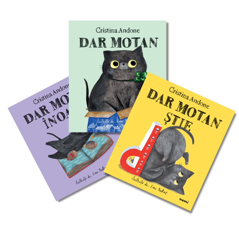 Pachetul Dar Motan reunește trei povești îndrăgite din seria semnată de Cristina Andone, în care copiii îl descoperă pe Dar, un motan curios, elegant și plin de aventuri, care vede lumea cu ochi jucăuși și învață din fiecare experiență.