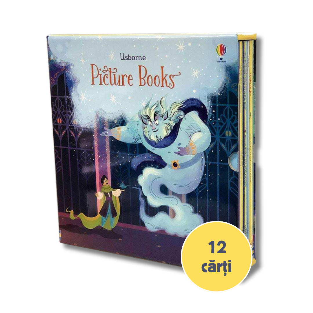 Picture Book Set este un pachet Usborne cu 12 povești ilustrate în limba engleză, ideal pentru lecturi de seară sau primele încercări de citit. Fiecare carte spune o poveste captivantă, însoțită de ilustrații pline de culoare, care stârnesc imaginația și îi ajută pe cei mici să se îndrăgostească de citit. O alegere inspirată pentru micile biblioteci de acasă sau pentru un cadou educativ.