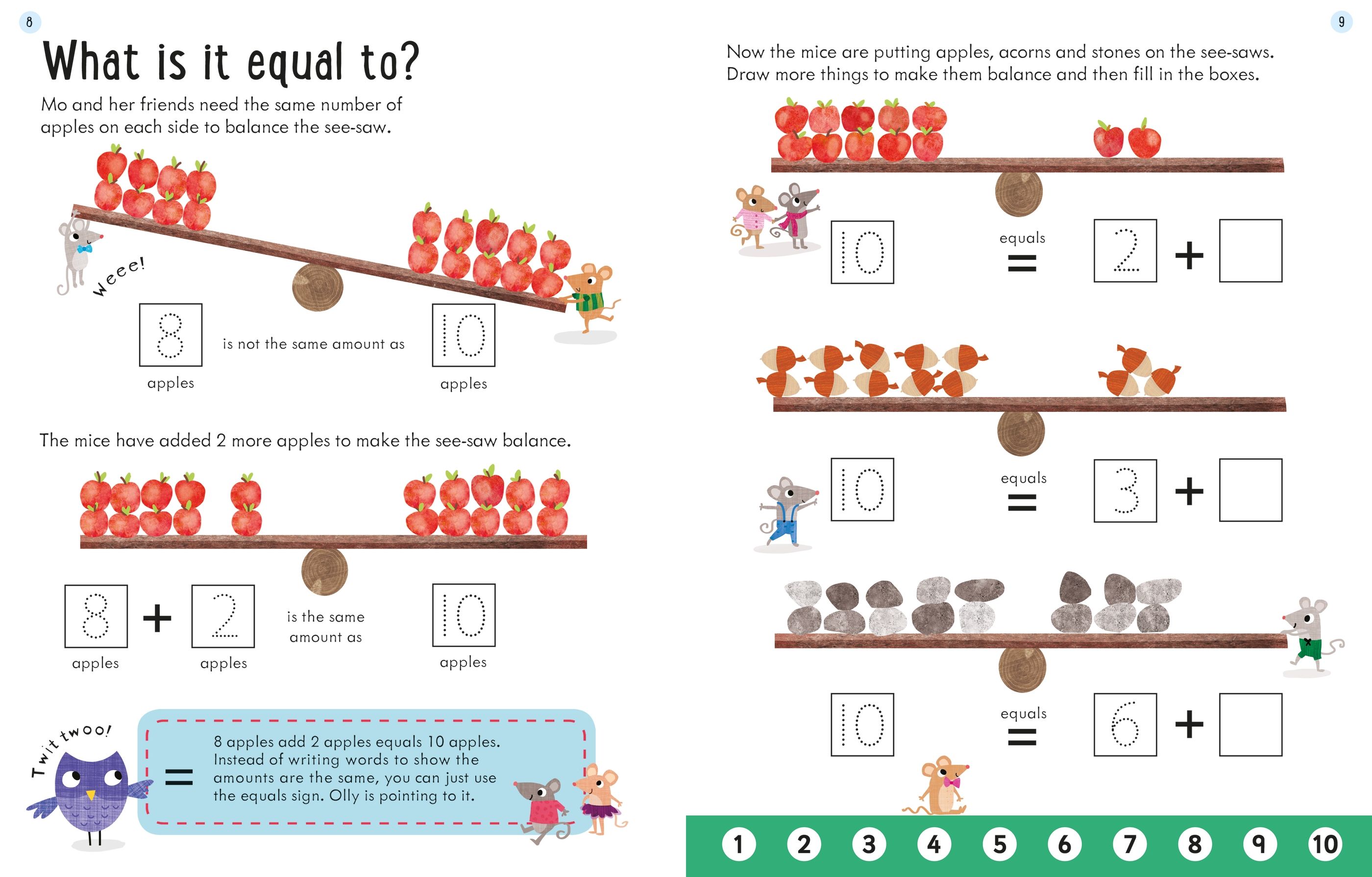 Usborne Workbooks Adding 5–6 este o carte educativă de activități de la Usborne concepută special pentru copiii de 5 ani+ care învață noțiunile de bază ale adunării numerelor. Cu ajutorul unor personaje prietenoase, precum animăluțele din pădure care îi ghidează pe cei mici, cartea introduce conceptul de a aduna două numere și cum se scrie o calculare simplă de adunare, acoperind exerciții cu numere de la 0 până la 20.